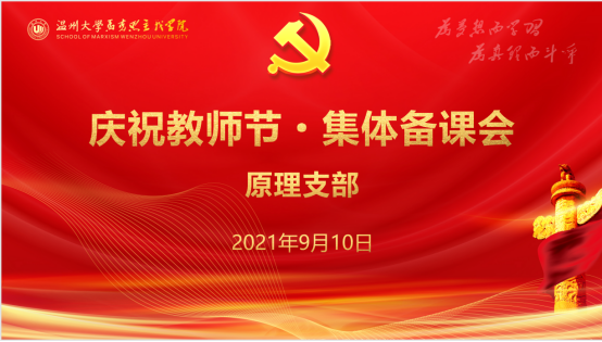本次集体备课会在第37个教师节召开,进一步增强了原理教研室老师们的凝聚力和使命感。甘守三尺讲台,争做“四有”老师。教师节是我们教育人的节日,我们要倍加珍惜,赓续百年初心,担当育人使命!正如一代伟人恩格斯所说的“尊师重教是一个民族强大的表现。”如果没有老师对文明的继承和传播以及创造性的劳动,就不可能培育出建设祖国的栋梁之才。由此可见,民族的复兴与教育事业息息相关,而教育事业中教师是功不可没的。在教师岗位上的每一位老师都是一生平凡,一世艰辛,但他们却是人类的“灵魂工程师”,在他们手里握着一个国家一个民族的希望,而学生就是那颗希望的种子,在老师的手心里正在茁壮地成长着......
