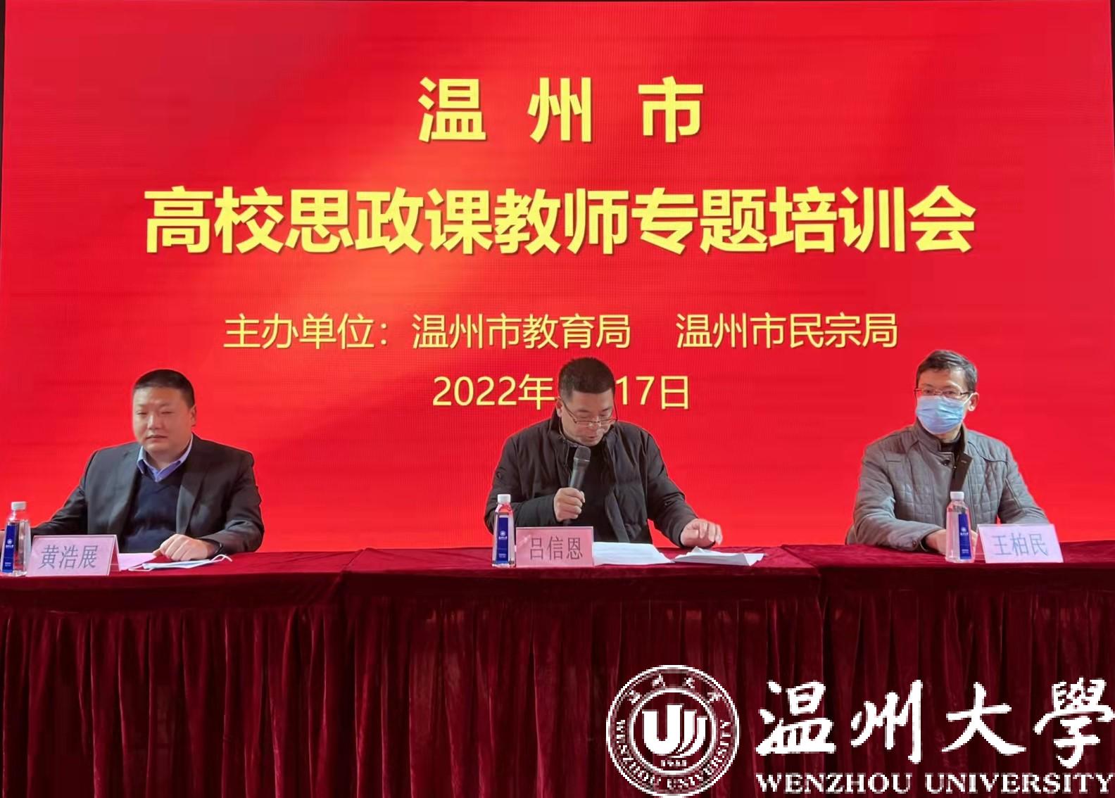 2月17日上午,温州市教育局、市民宗局在永利集团yl6809马克思主义理论教育基地举办温州市高校思政课教师专题培训会。市教育局高教处处长吕信恩、副处长侯伯念,市民宗局宗教三处副处长黄浩展,yl6809永利党委书记王柏民以及在温各高校yl6809永利院长、思政课骨干教师等40余人参加。