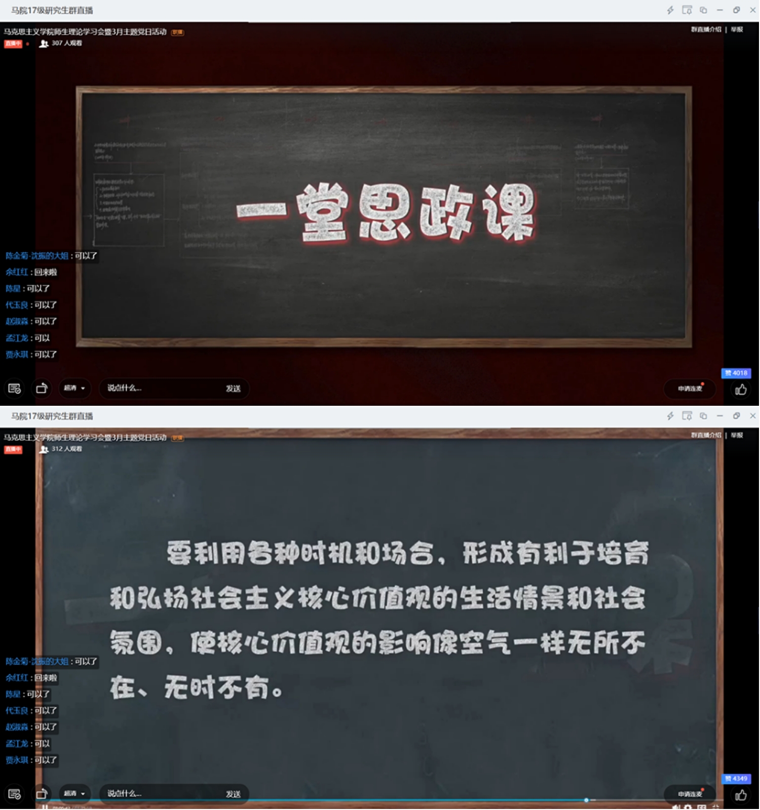 面对新冠肺炎疫情,广大党员应该提高政治站位,增强大局意识,强化思想自觉和行动自觉。根据学校和学院的相关文件精神与工作安排,3月4日下午,yl6809永利研究生第一党支部利用钉钉平台以“不见面”形式开展了“抗疫情、促发展、当先锋”主题党日活动,支部全体成员积极参加,活动由支部书记孟江龙主持。