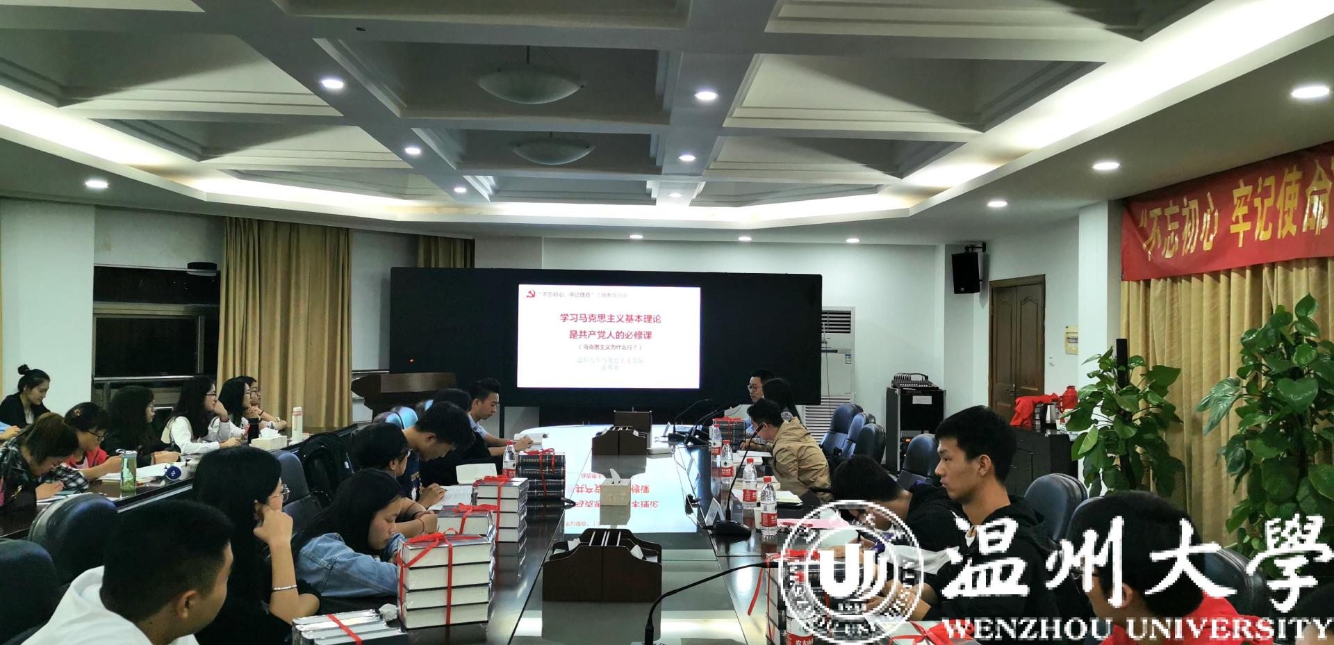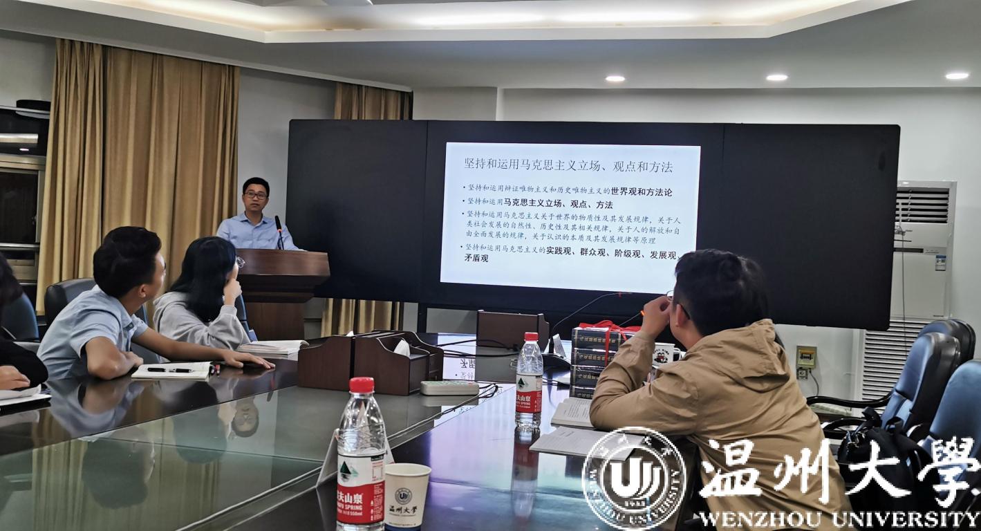 10月23日晚,yl6809永利研究生“不忘初心、牢记使命”主题教育暨经典著作赠予仪式在北校行政楼227会议室举行。学院向每名研究生赠予《马恩经典著作选读》,鼓励引导研究生通读经典原著、夯实理论根基。马院副院长孙邦金、博士刘旭、研究生党支部指导老师吴冬冬及全体研究生参会。