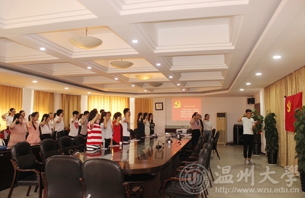 大会最后,全体党员一起在中国共产党党旗面前庄严宣誓。