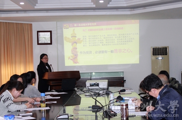 4月13日下午4点,我院在北校区行政楼227会议室举行了首届优秀微党课比赛。本次比赛吸引了九位党员同学参加,评委由党总支书记王柏民、副院长卓高生、综合科科长曾蓓蕾老师以及部分党员同学组成。