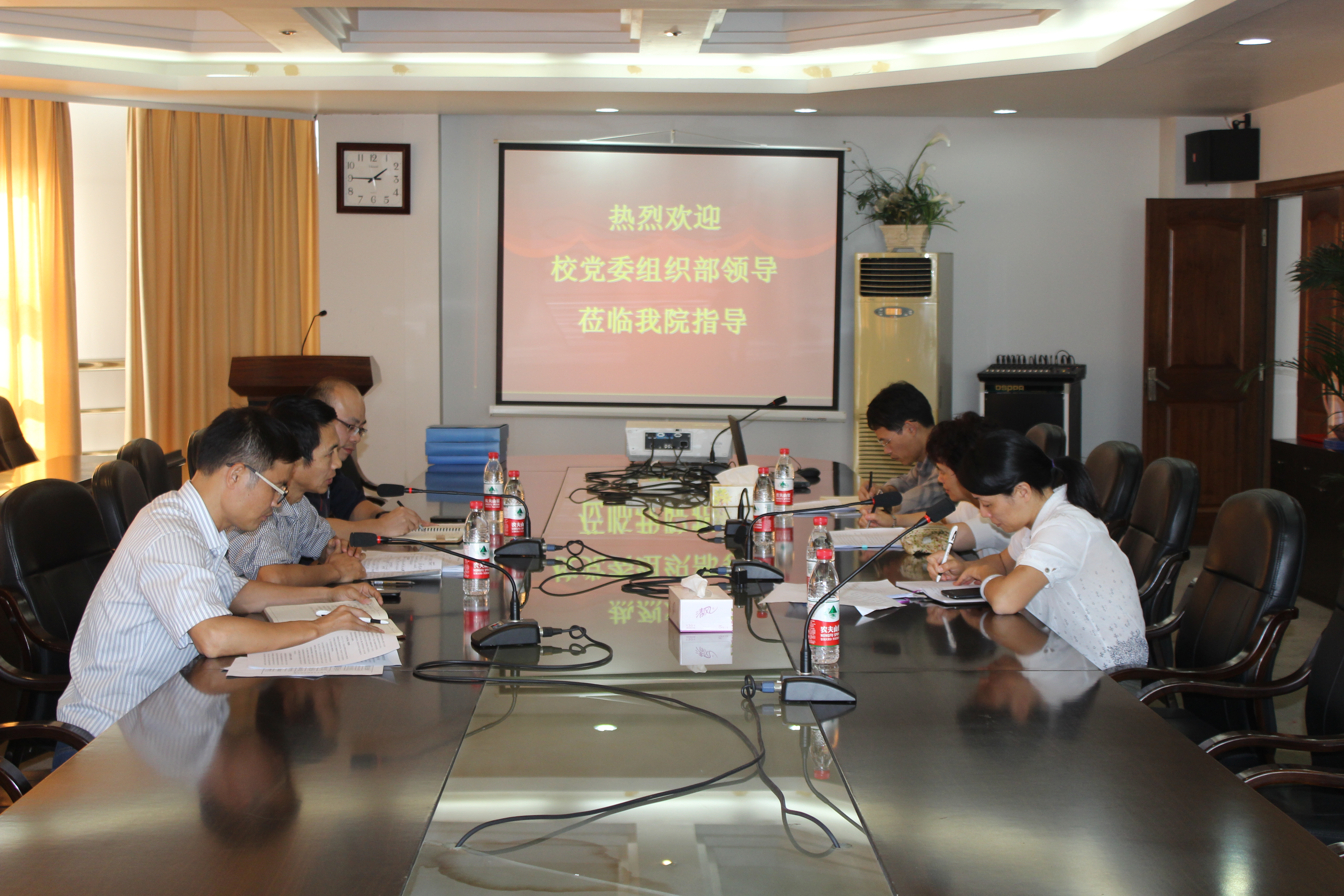 学院党总支副书记孙武安根据调研主题对学院基层党组织建设情况作了总体汇报。孙书记围绕学院党总支机构设置、班子建设、党总支政治核心作用发挥、支部建设等方面的工作情况进行了全面的介绍。卓高生副院长做了补充说明。朱部长对我院基层党组织建设取得的成绩给予肯定,认为学院党总支在加强理论学习的频度、深度、广度上表现突出,学院党总支工作总体扎实有效,在推进学院发展、促进师生和谐等方面发挥着积极的作用。她希望学院党总支需要继续结合专业优势,发挥专业特长,再接再厉,使学院基层党支部建设更上一层楼。