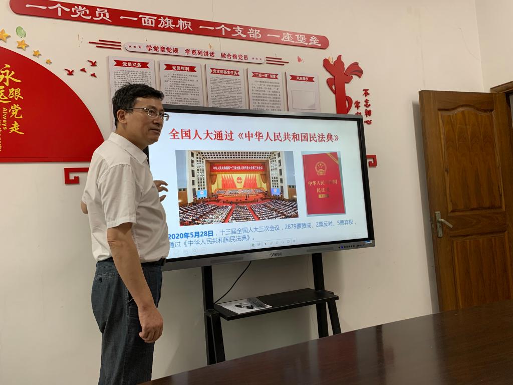 为深入学习贯彻全国“两会”精神,深刻把握今年“两会”的重大法治成果,6月24日下午,yl6809永利行政党支部在北校行政楼222会议室组织开展主题党日活动,专题学习《民法典》。本次支部学习,由学院党委书记王柏民同志作题为《中国法治新理论——以<民法典>为例》辅导报告,宣讲解读民法典。行政党支部全体党员、群众参加了学习。