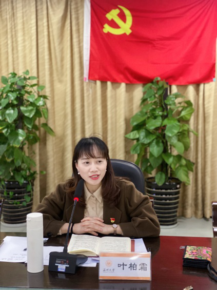 会议最后,叶柏霜老师对各位党员同志在新学期伊始的精神面貌给予赞扬,肯定了每位党员同志经过一学期磨炼的成长,并激励各位同志在中国共产党成立100周年之际,要走在前列,在宏观历史背景下发出马院声音,锚定3818,奋进2021。