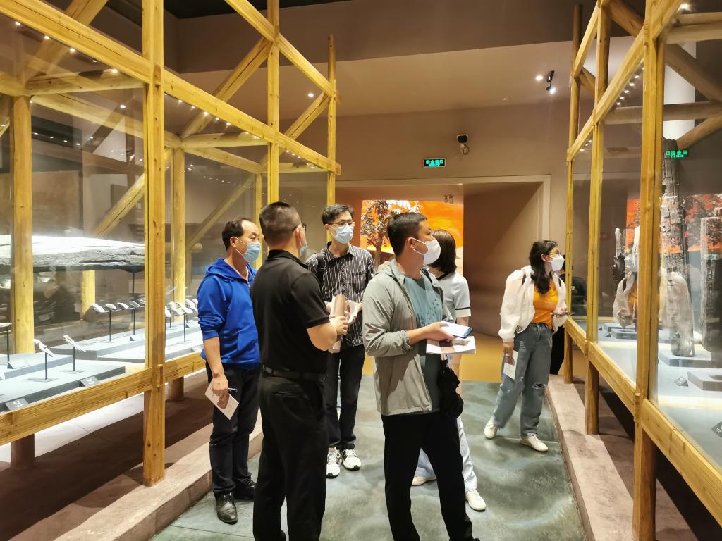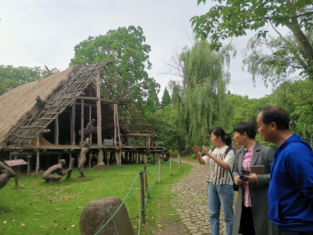 下午研学师生参观了河姆渡遗址,遗址位于浙江省宁波市余姚市河姆渡镇河姆渡村,是中国南方早期新石器时代遗址。师生通过语音讲解详细地了解了河姆渡的整体发掘情况、先民的生产生活方式、特殊的耜耕农业、制陶业的发展以及河姆渡早期特殊的文化,感受到了河姆渡先民的艰苦的生活以及自强不息、积极乐观的优秀品质和生存智慧。