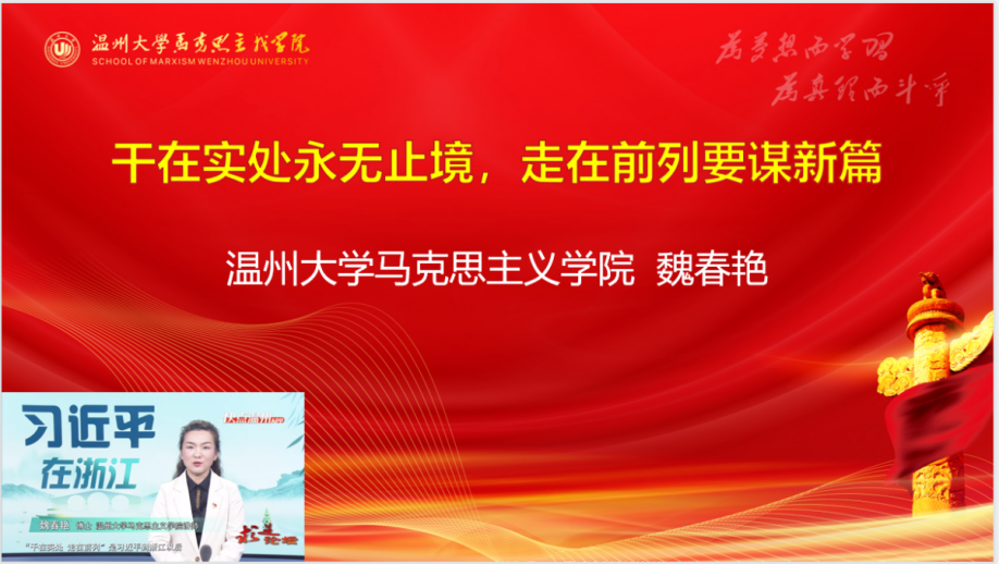 支部还组织了线上观摩,学习了支部党员骆徽、魏春艳、张海波三位老师参与的温州广播电视传媒集团《求是论坛》栏目联合yl6809永利推出的“习近平在浙江”系列微宣讲。引导广大党员教师更好地学懂弄通做实习近平新时代中国特色社会主义思想,更加坚定不移地沿着习近平总书记指引的路子走下去,推动“十四五”开好局、起好步,绘就全面建设社会主义现代化的新图景。