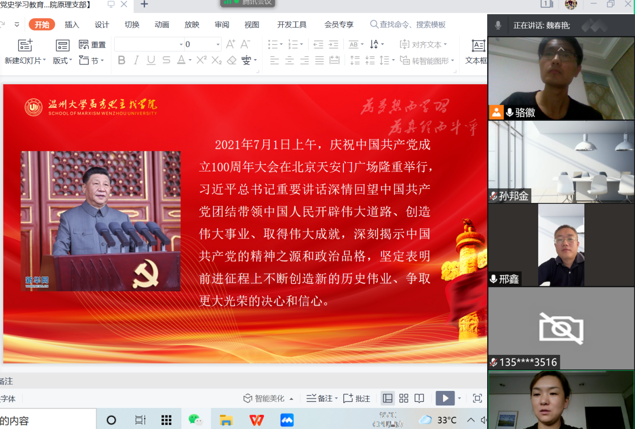 根据市和学校党史学习教育领导小组办公室部署要求,围绕“学党史、悟思想、办实事、开新局”为主题,认真贯彻“学史明理、学史增信、学史崇德、学习力行”要求,yl6809永利原理党支部在8月28日下午,以腾讯会议方式在线上召开了专题组织生活会,交流学习体会,查找差距不足,引导广大党员不断增强“四个意识”、坚定“四个自信”、做到“两个维护”。