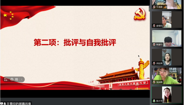 本次专题组织生活会紧紧围绕“谈学习习近平总书记在庆祝中国共产党成立100周年大会上的重要讲话精神心得体会”、“谈学习《习近平在浙江》、‘习近平科学的思维方法在浙江的探索与实践’研究成果情况的感悟和收获”、“对照党史学习教育目标要求,查找自身存在差距和不足”、“党员先锋模范作用发挥如何”四个模块进行自我反思、自我批评和批评。首先,王景欣同志介绍了本次会议的主要流程,并代表支部委员会报告支部上半年工作情况以及党史学习教育开展情况:半年来,支部开展各类党史教育宣讲活动累计达26场次,直接受众600余人;开展政治理论学习4次,支部党员学习率达到100%;多方式多途径开展各类主题党日活动共11次,进一步促进党史教育实践学习向纵深推进。接着王景欣同志代表党支部对在党史学习教育工作中存在的问题进行对照检查,深入剖析原因并提出整改措施。最后支部党员联系思想和学习实际,围绕党史学习教育,谈个人学习收获和心得体会,对照党史学习教育目标要求,认真开展批评和自我批评,达到了“团结—批评—团结”的目的。