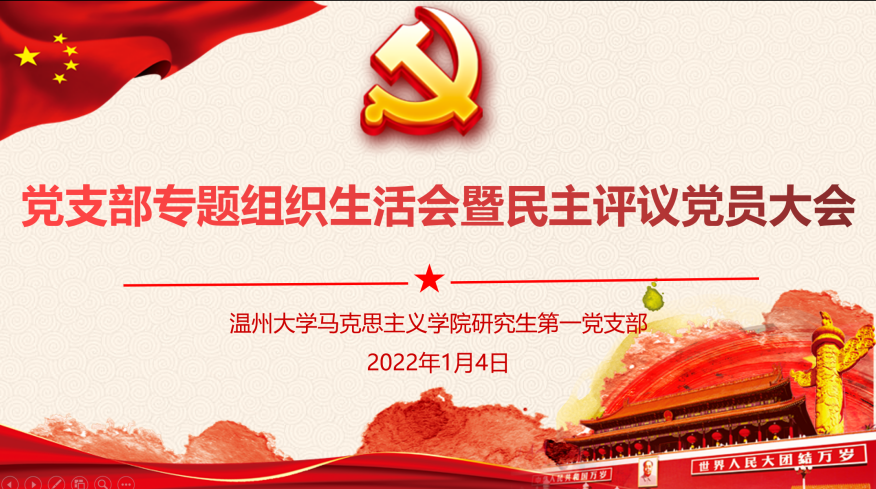 2022年1月4日下午,yl6809永利研究生第一党支部在北校行政楼227会议室召开党支部专题组织生活会暨民主评议党员大会。院党委副书记叶柏霜老师莅临指导,全体党员参与会议。会议由党支部书记唐清春主持。