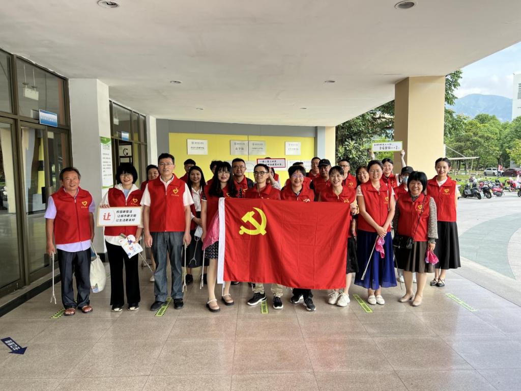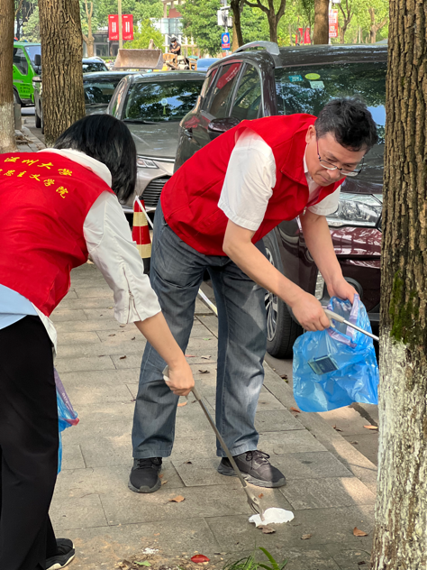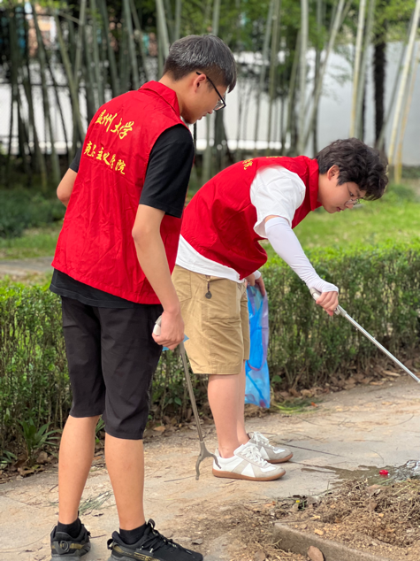 同时,以教工党支部牵头,带领学生党员进行校园环境卫生整治工作。“红马甲”们手持夹子、垃圾袋等工具,对北校区公共区域的烟头、果壳、塑料袋等垃圾及时清理,努力营造“保护环境,人人有责”的浓厚氛围。