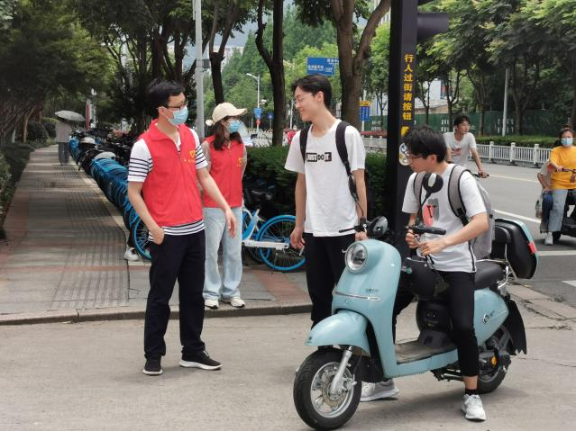活动期间,党员们充分利用课余时间和工作间隙,穿上红马甲,走上校园街头,传递文明理念,引导文明出行,倡导师生“做文明有礼温大人”。教学楼宇间、红绿灯牌下,党员们以行动践行“文明有礼”,提示路过的同学按规定道路行车,在规定区域停车,骑电动车时要佩戴头盔、严禁载人行驶,排队要遵守秩序,用餐要避免浪费,提高安全意识,有效防范校园诈骗等。