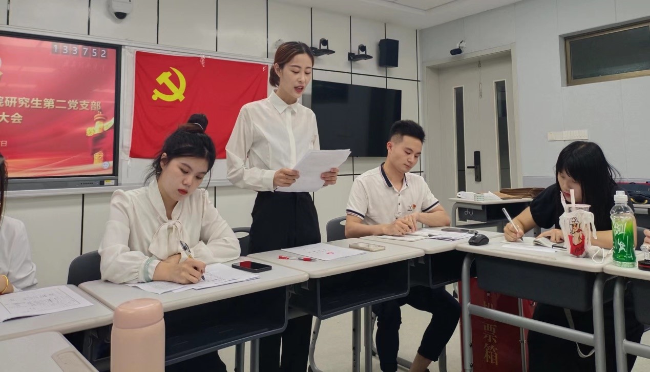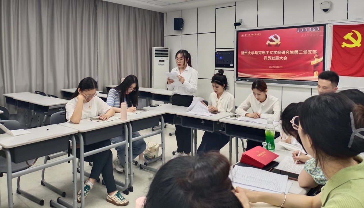 为进一步加强和推进党员队伍建设,为基层党支部注入新鲜血液,根据《中国共产党发展党员工作细则》和《中国共产党章程》等相关规定,6月7日,yl6809永利研究生第二党支部于瓯四-206召开党员发展大会,yl6809永利团委书记、学工办主任曹开秋老师莅临指导。会议由党支部书记刘宁涛主持。全体党员与发展对象参与会议。