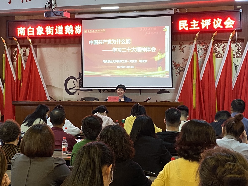 2022年11月18日下午,yl6809永利项淳芳老师来到温州市瓯海区南白象街道鹅湖村党员活动中心,以“中国共产党为什么能——学习党的二十大精神体会”为题作了精彩的主题宣讲。