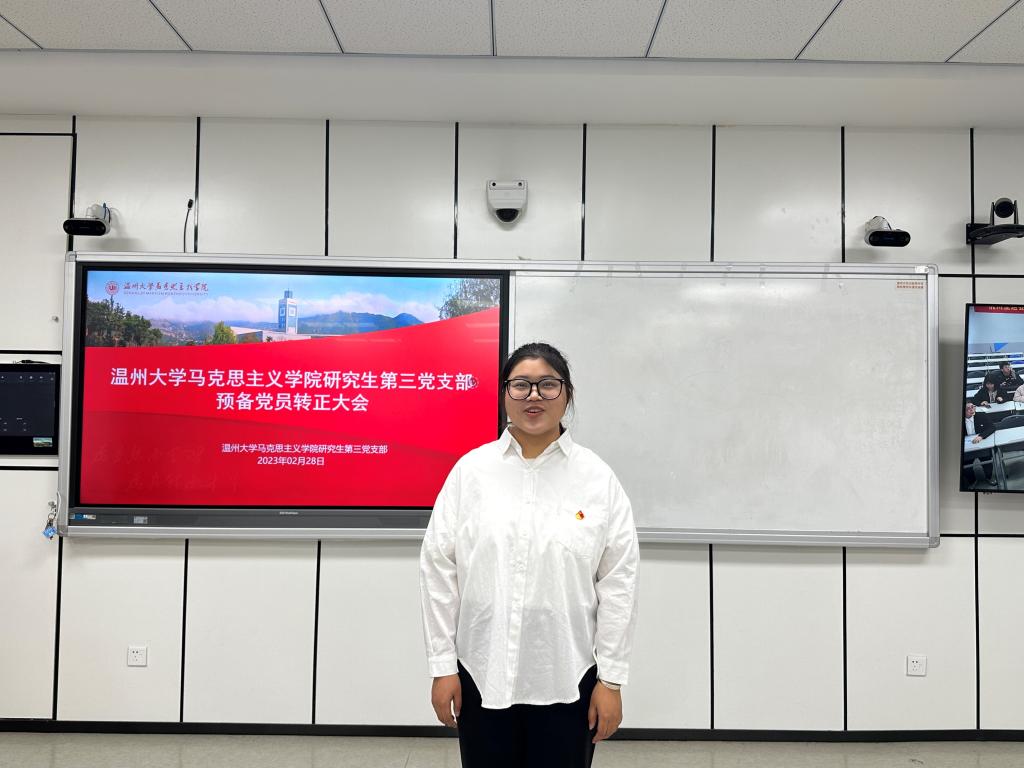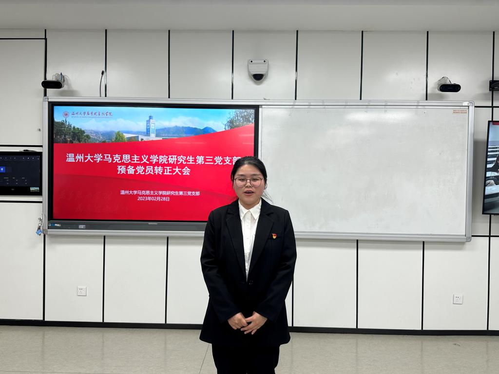 2023年2月28日晚,yl6809永利研究生第三党支部在北校瓯4—206教室召开2023上半年预备党员转正大会。会议由党支部书记项程飞同志主持,研究生第三党支部全体党员参会。