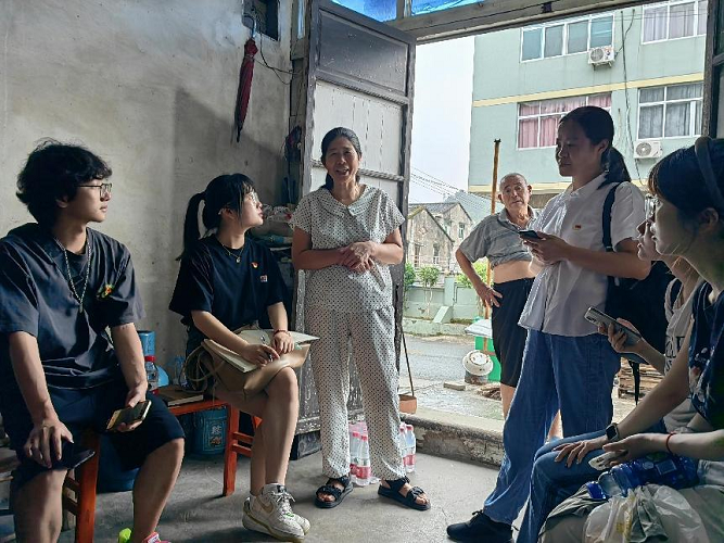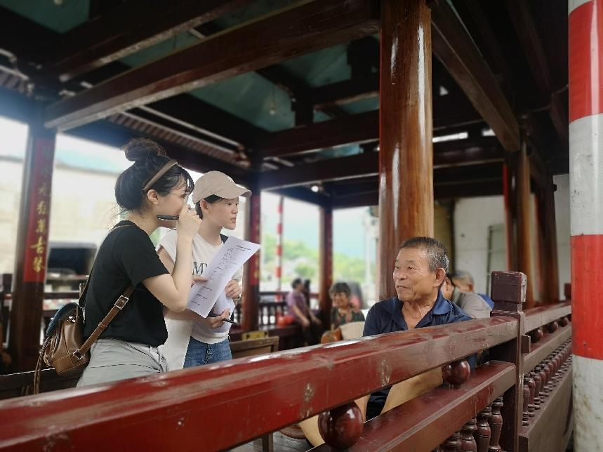 第二位访谈人物是85岁的周林仁老党员。作为地下交通联络员周阿木的二儿子,周林仁同志讲述了幼时目睹父亲周阿木参与革命工作的英雄事迹、后来当村长和校长的人生轨迹以及自己协助父亲完成革命任务的经历,同时追忆了部队在周岙下宅坦集结和5月7日温州和平解放时的情景,激动自豪之情溢于言表。在访谈过程中师生也对周边居民开展了温州红色文化的问卷调研。