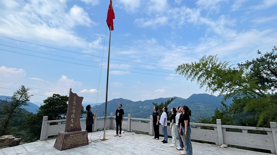 最后,一行人在周懋荣书记的带领下,沿着泥泞的碎石山路去寻找红色印记——乌崖山会议旧址。乌崖山作为革命秘密会议点,记录着一段峥嵘岁月故事,蕴藏着独特的和平文化资源。yl6809永利教工第一党支部作为首个登上乌崖山会议旧址的团队,在国歌的萦绕下缓缓地升起了鲜艳的五星红旗,向无数革命先辈致敬。大家深刻认识到和平来之不易,要从历史和文化中汲取力量,增强做中国人的志气、骨气和底气,坚定信心,砥砺前行。寻访泽雅红色交通联络站,传承红色基因,一直在路上。