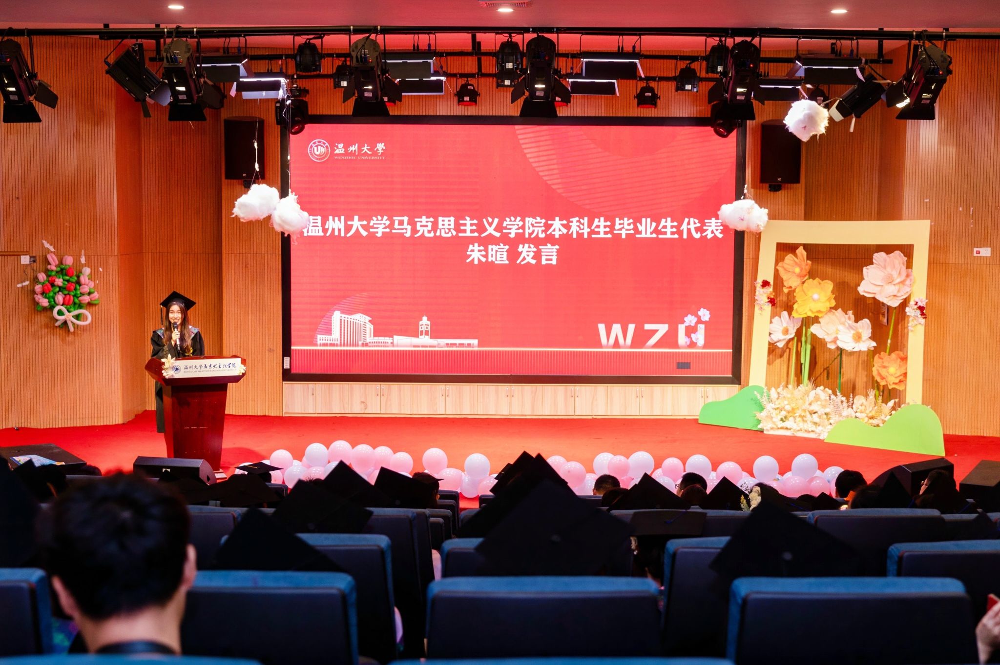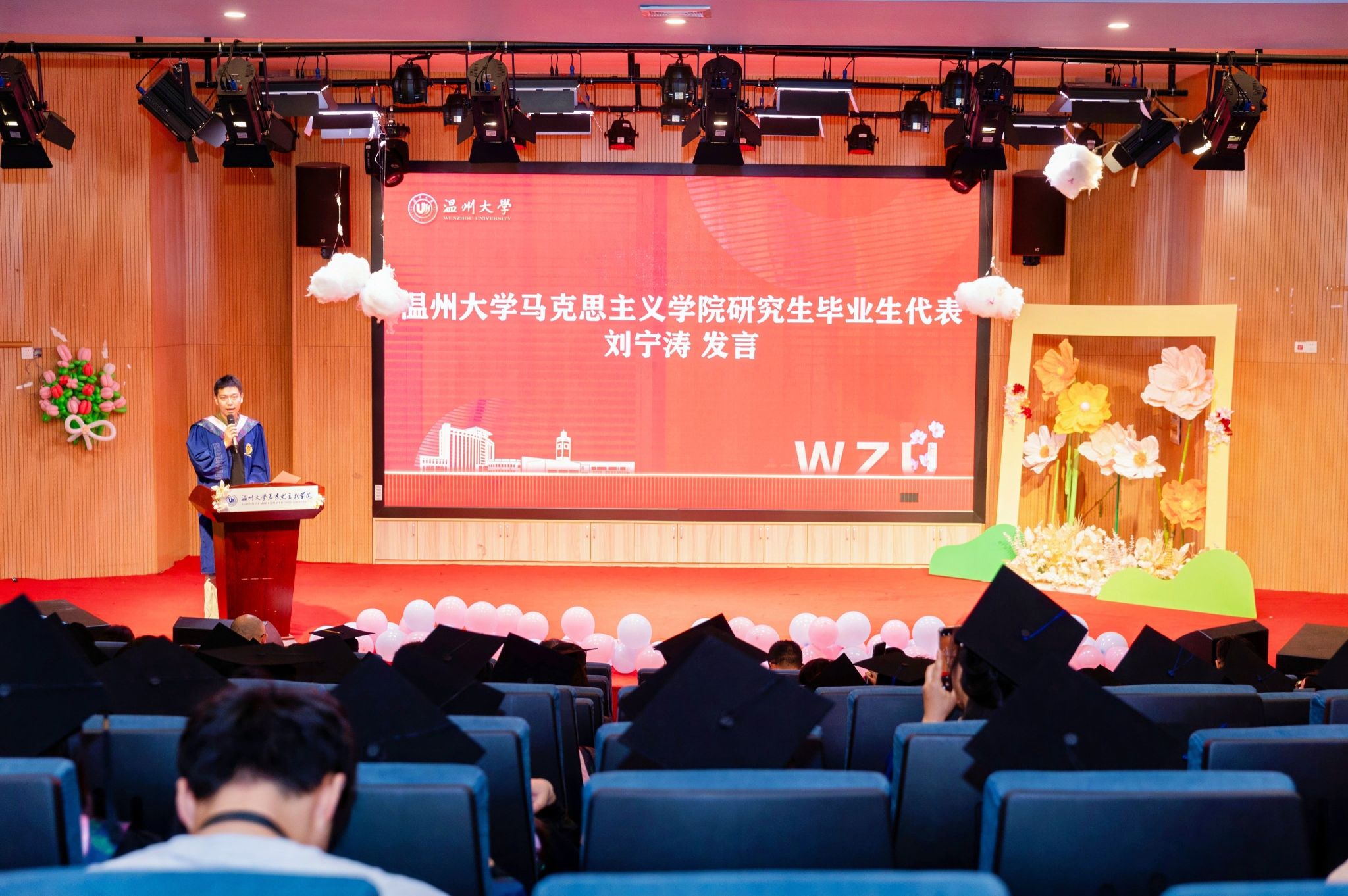 2024届研究生毕业生代表刘宁涛、本科生毕业生代表朱暄对自己在马院的学习生活展开了回顾,表达了对学习、对学院、对老师们真挚的感激之情。在未来的生活中,不忘“为梦想而学习,为真理而斗争”的院训,保持纯粹、永远真诚。“轻装策马青云路,人生从此叹长风”。愿每一位毕业生青春葳蕤、生命富饶,无愧自我、无愧时代。