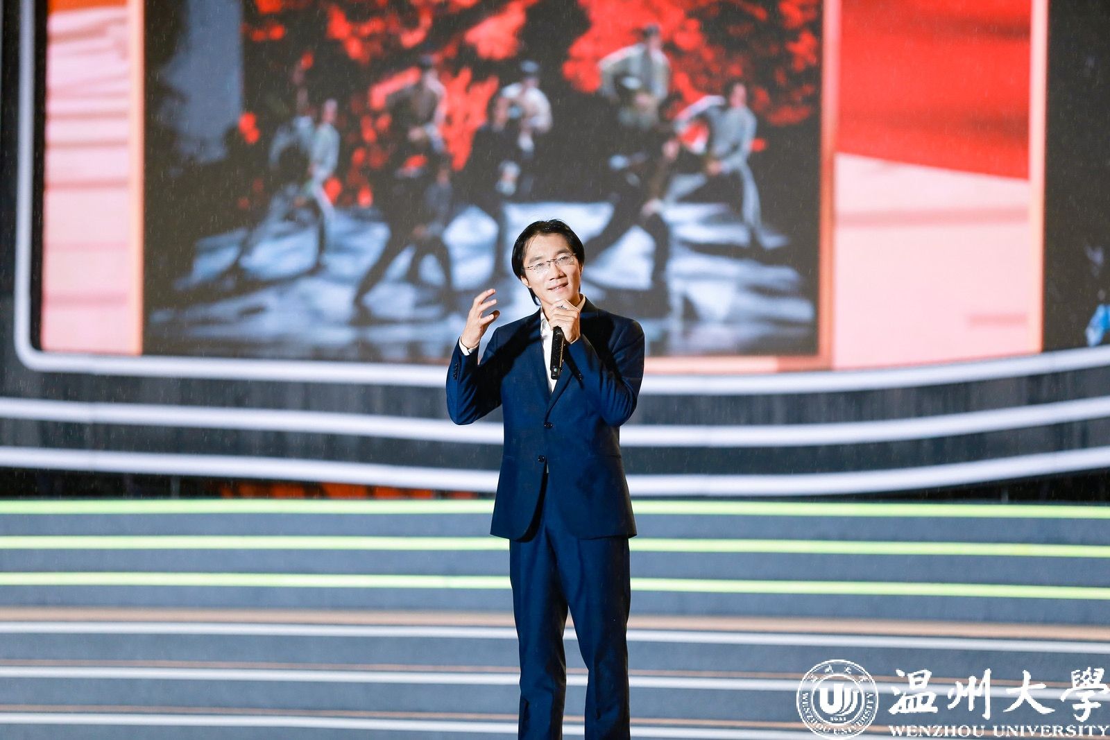 “今年是我与艺术思政大课双向奔赴的第三年。我和我的学生一起登上了艺术思政大课的舞台。大雨中看到同学们在台下和我一起用力挥手,真的非常感动。雨中我们共同度过浪漫时刻,未来,我会坚守育人初心,和我的289颗星星们一起闪耀。”《温大记忆》表演者、机电工程学院新生辅导员徐琬莹动情地说。