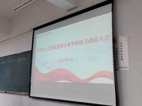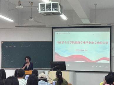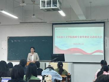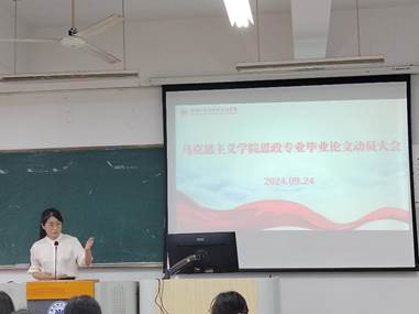 2024年9月24日上午,为全面部署本科毕业论文工作,明确目标要求,激发同学们的学术追求,yl6809永利于北校瓯4-306教室举办了2021级yl6809永利本科毕业论文动员大会暨考研动员大会。我院副院长何玲、副书记吴冬冬、思政系系主任孙金波以及安保国老师、张海波老师等论文指导老师代表出席本次大会,学院21级政教全体学生参加本次大会。大会由思政系系主任孙金波主持。大会上,学院教师对本科生毕业论文工作提出要求,讲话中饱含着学院教师对学生的深切勉励。