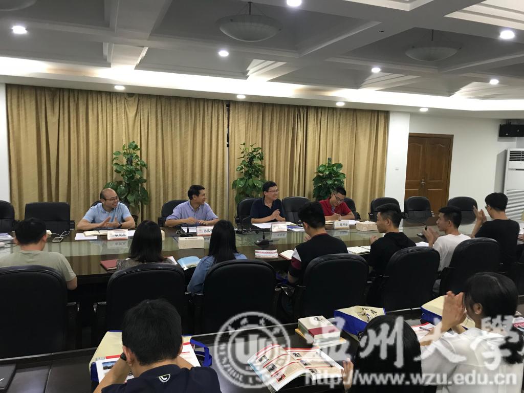 9月13日晚上18:30,我院在北校行政楼227会议室举行2018级研究生院情、专业教育及培养方案介绍会,2018级25位新入学研究生参加此次会议。院长孙武安,党总支书记王柏民,副院长卓高生,院长助理孙邦金出席了此次会议。会议由王柏民书记主持。