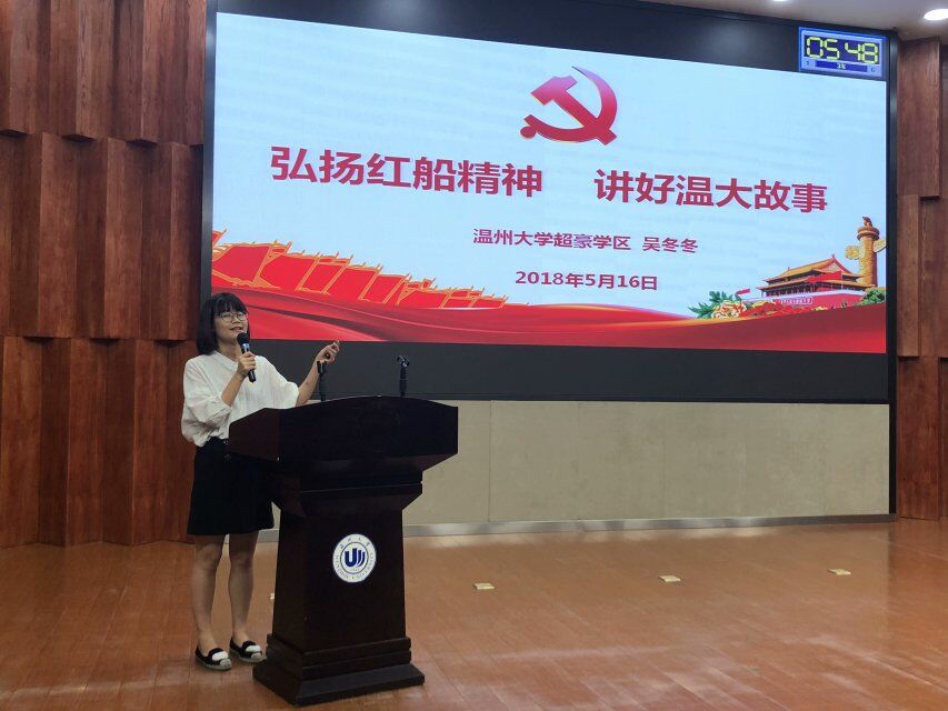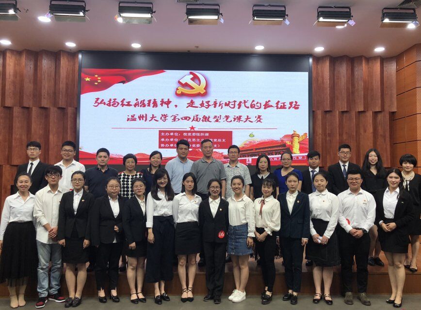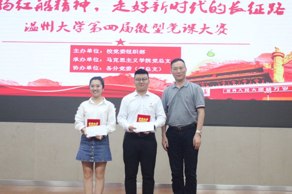 在永利集团yl6809党委组织部的大力宣传与各党总支的积极配合下,来自研究生院、步青学区、溯初学区、超豪学区、瓯江学院的18位学生党员参与了此次大赛。风华正茂,正直青春年华,选手们恰当运用多媒体,将红船精神与党员事迹相结合,融其精神于现实,付诸行动于小事,将党员在生活中如何“弘扬红船精神,走好新时代的长征路”这一问题做了清楚的阐释,向所有人发出继承和弘扬红船精神的号召,将新时代学生党员的精神面貌发挥得淋漓尽致。选手展示结束,微党课大赛教工组选手吴冬冬及余海群代表教工党员就其微党课主题进行了精彩的展示,给学生党员起到了很好的榜样示范作用。