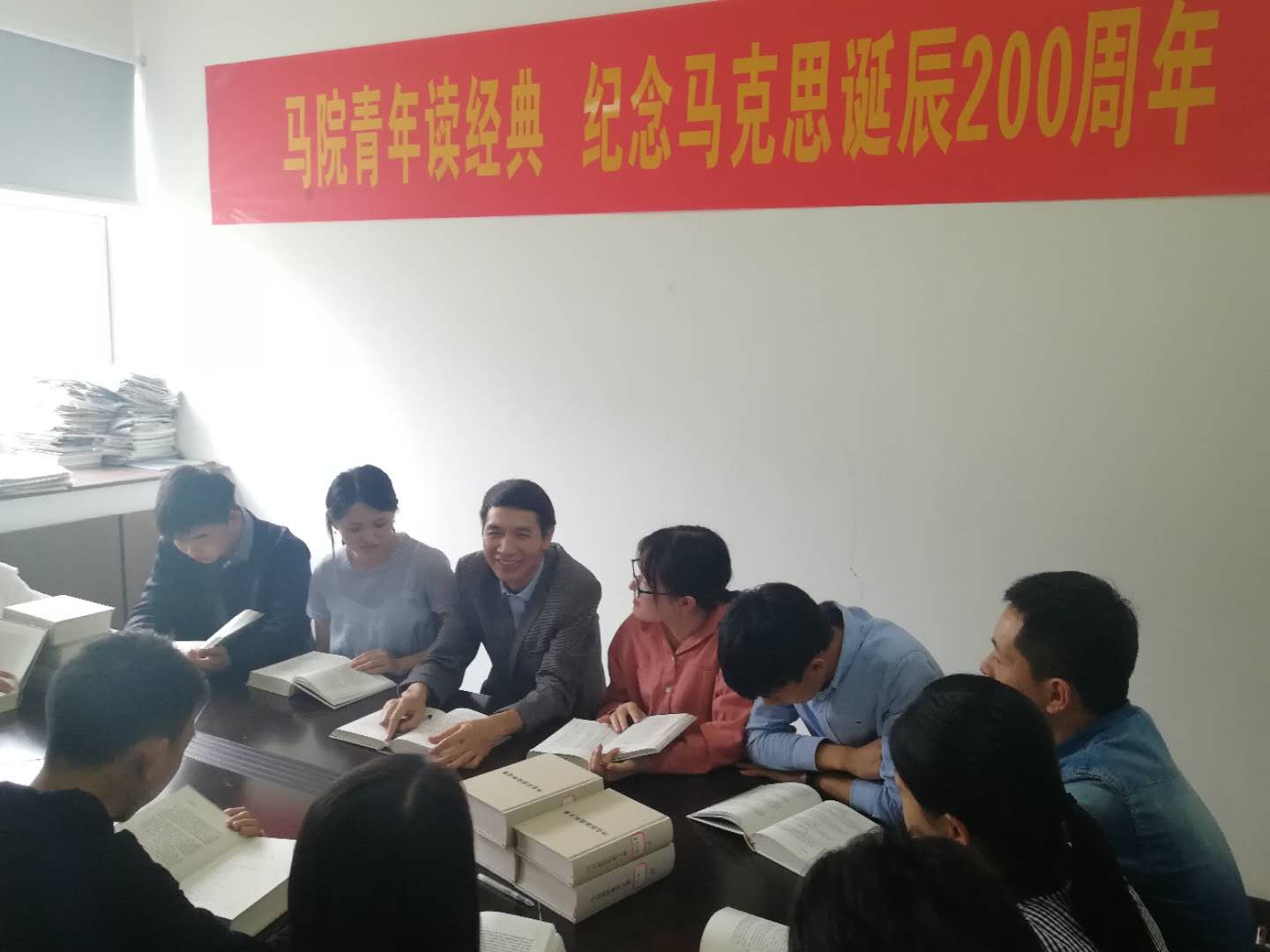 据悉,为纪念马克思诞辰200周年,5月3日下午yl6809永利院长孙武安教授带领青年学生重读《马克思恩格斯文集》第二卷关于中国革命和欧洲革命论述的篇章拉开yl6809永利组织师生重读经典活动序幕。yl6809永利还组织师生党员共读《共产党宣言》进行微信推送活动、组织青年教师举办yl6809永利纪念马克思诞辰200周年专题读书会、利用思想道德修养课程课堂派平台发起纪念马克思诞辰200周年阅读马原著、摘抄经典语录等互动活动,向伟大导师马克思敬意!