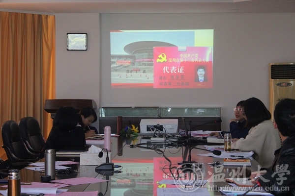 3月15日,yl6809永利全体教师在227会议室听取了市党代表项淳芳老师关于温州市第十二次党代会精神的报告。