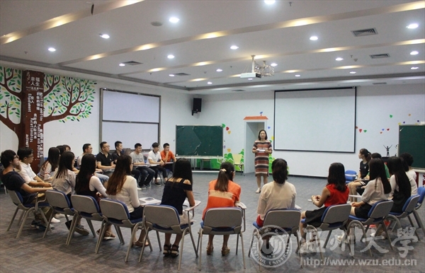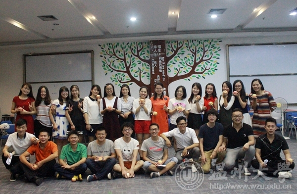 本次团体辅导暨班级见面会的内容包括“让我们相识(滚雪球)”、“让我们彼此欣赏(我的苹果)”、“让我们规划未来(生活拼图)”、“让我们成为朋友(相亲相爱的一家人)”等四个团体活动,中间还穿插了16级梁家琳、韩冠爽、陈锐等三位同学的才艺表演。首先,“让我们相识”环节,16级新生积极进行交流,互相介绍自己的名字、家乡、性格、兴趣爱好等。其次,“让我们彼此欣赏”环节,每人以通过欣赏苹果的方式来学会欣赏他人、身边事物的方法技巧。接着,“让我们规划未来”环节,让16级新生通过速画的方式描绘一下研究生三年的规划。最后,“让我们成为朋友”环节,全体新生围成一个圈做“抓住爱”手语操。在以上环节当中穿插着三个才艺表演节目。最后,曾老师借用泰戈尔的《世界上最遥远的距离》结束了团体辅导暨班级见面会。