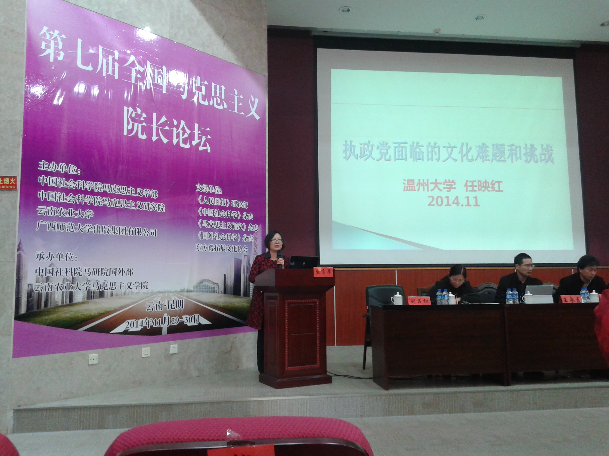 2014年11月29—30日,由中国社会科学院马克思主义研究院、云南农业大学主办的第七届全国马克思主义院长论坛在昆明隆重开幕。云南省人大农委副主任、云南农业大学原党委书记出席开幕式并致辞,中国社会科学院马克思主义研究院院长、党委书记邓纯东研究员出席开幕式并讲话。来自中国社会科学院、中国政法大学、厦门大学、华中师范大学、永利集团yl6809等高校和研究机构的80多名专家学者以及《人民日报》理论部、《中国社会科学》、《马克思主义研究》、《国外社会科学》等知名报刊编辑参加了本次学术盛会。论坛围绕着中国特色社会主义道路、制度、理论体系,社会主义核心价值体系,党史党建与思想政治教育,国外马克思主义研究以及思想政治理论课教学改革展开了热烈而深入的讨论。