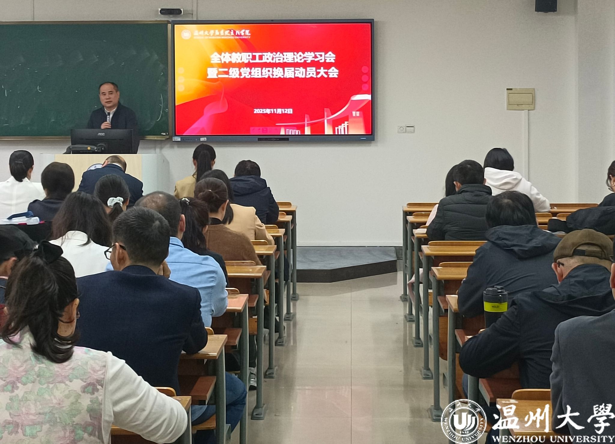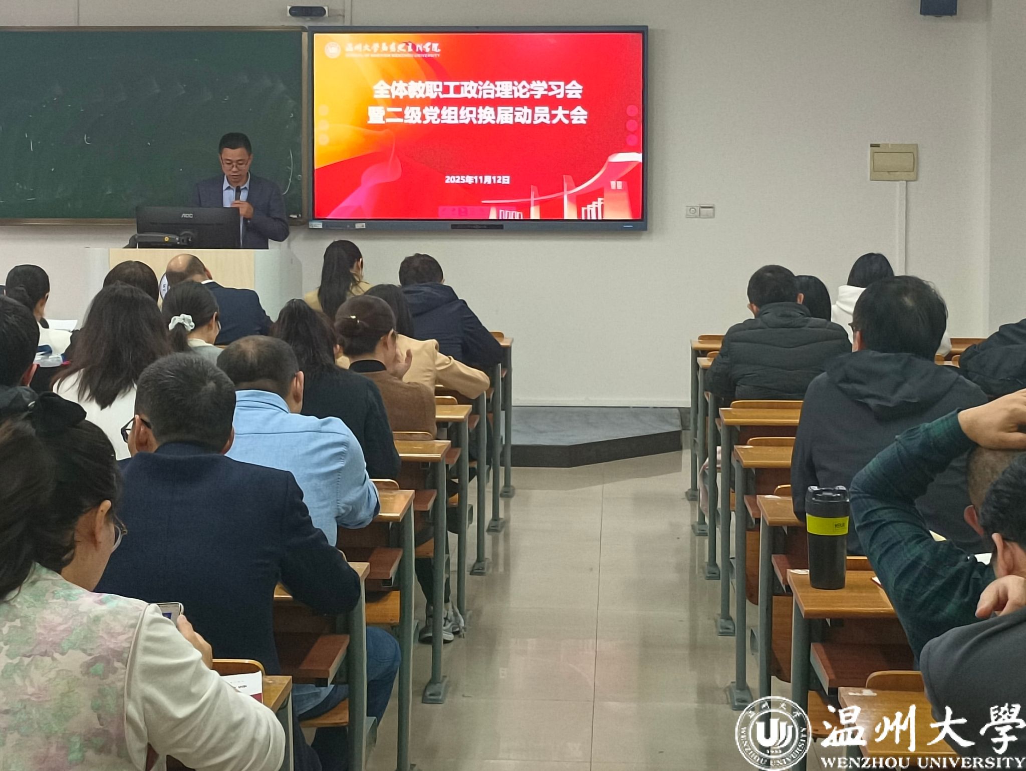 2025年11月12日下午,yl6809永利在北校区4号楼306教室召开全体教职工政治理论学习会暨二级党组织换届动员大会。学院领导班子成员、全体教职工和党员参加会议,学院党委书记杨立淮主持会议。