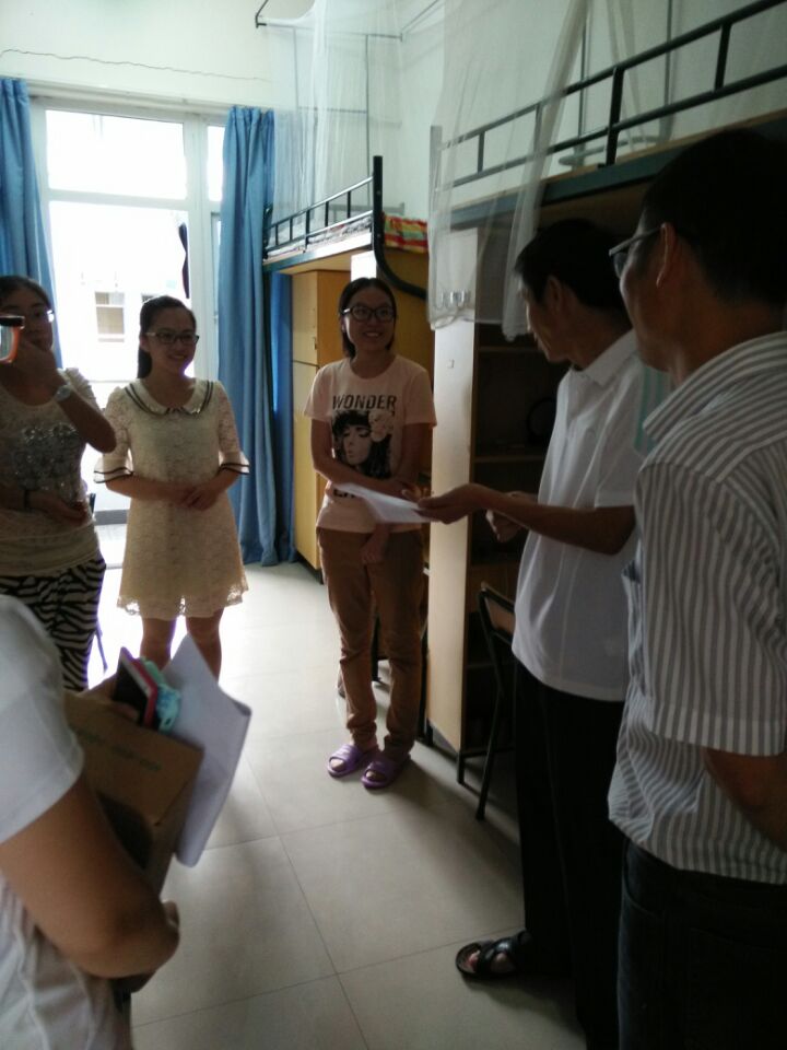孙院长每到一个宿舍都亲切地询问学生们来自哪里、对学校的印象如何、吃住是否习惯、生活上是否遇到困难等。关切地了解学生的思想和生活状况,询问同学们的家乡,并和同学们探讨当地的特色文化和乡风民俗,现场气氛十分融洽。同时孙院长也希望新生们尽快适应研究生生活,潜心学习,努力探究,争取三年后学有所成。