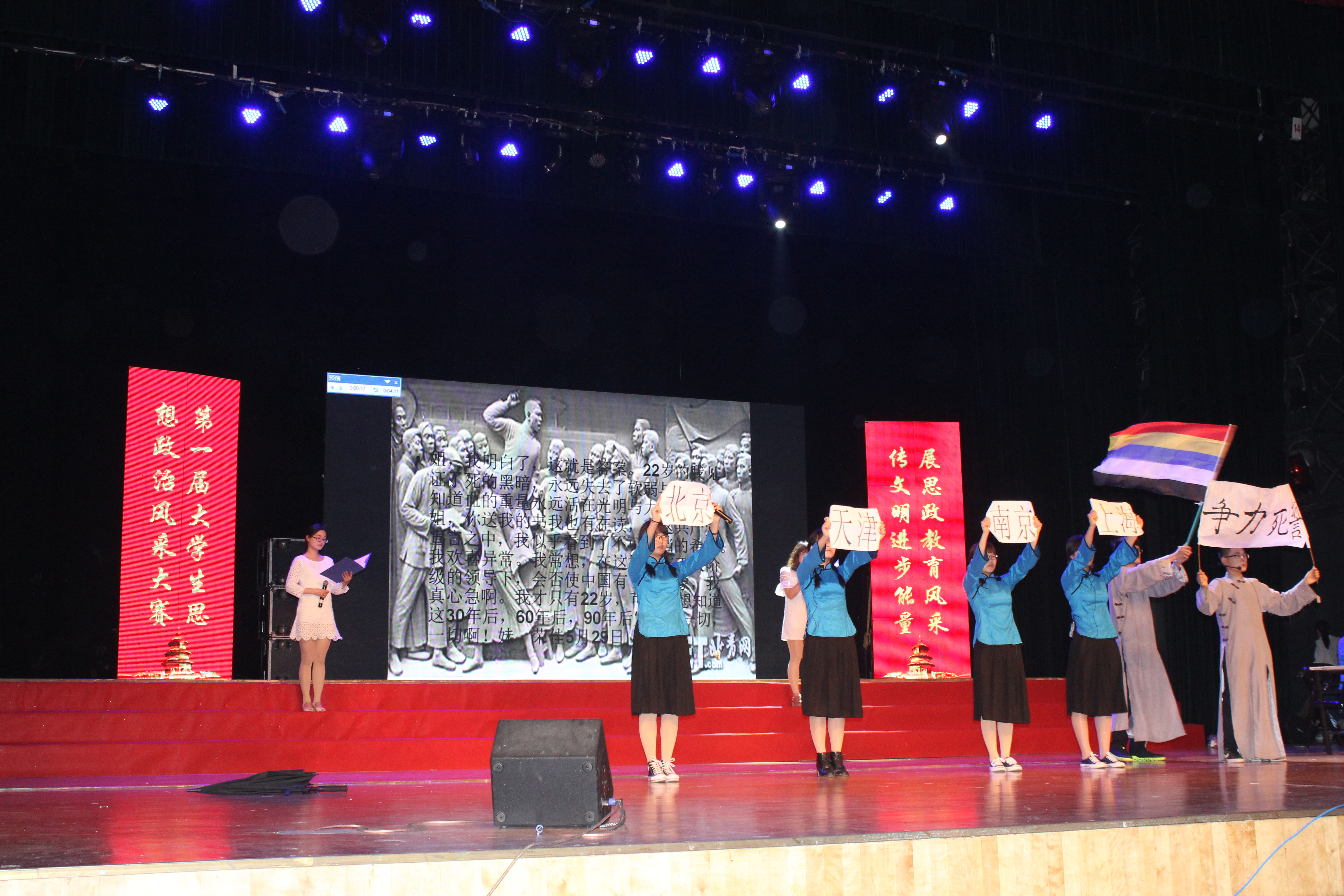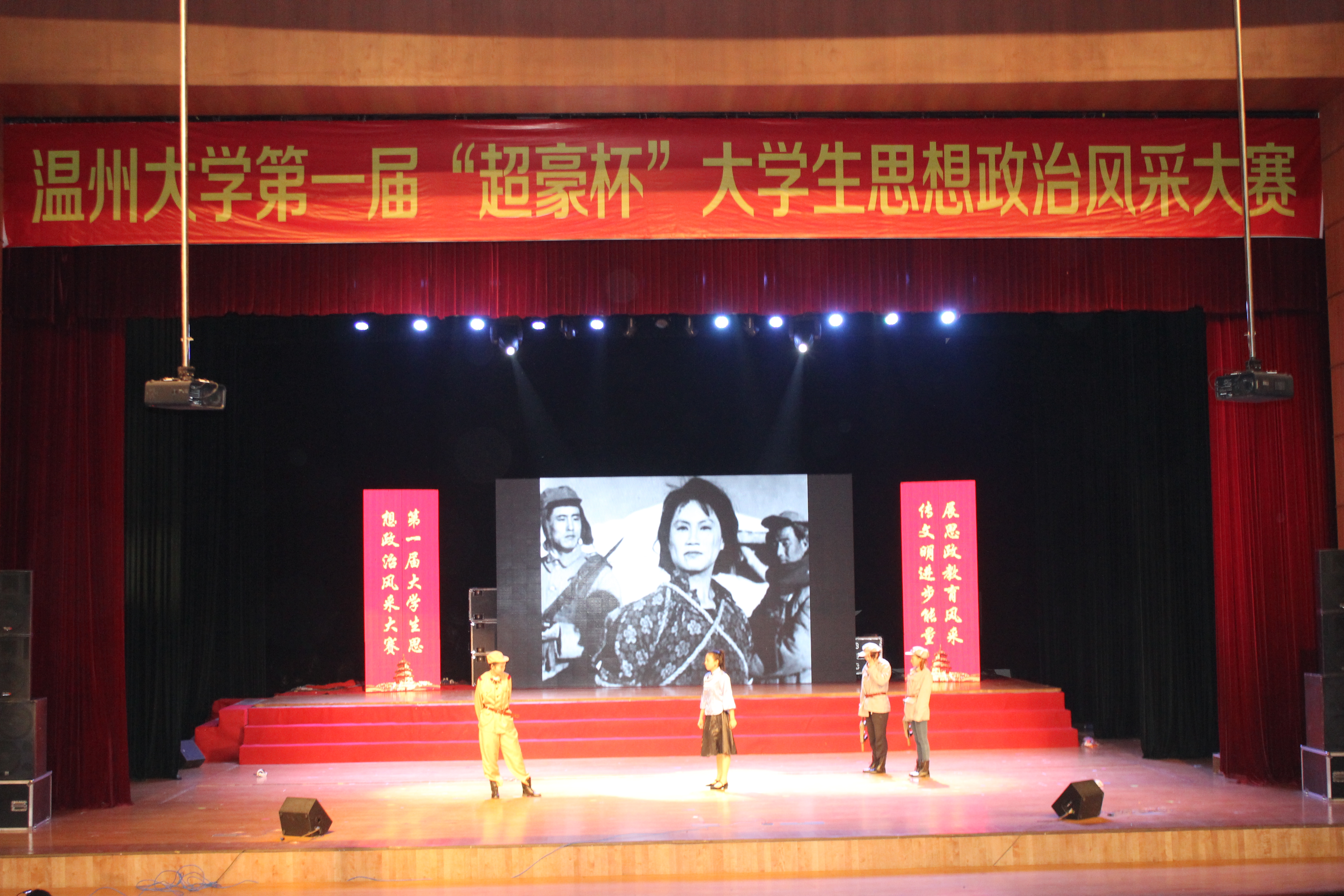 参加决赛的15支代表队是在yl6809永利全体任课教师的指导下,从本学期开课的全校15个学院60个教学班中选拔产生的。前期经历了近二个月的初赛、复赛。此次决赛,各代表队在任课教师的精心指导下,以5-10人为一个参赛小组,选题目、查资料、做课件,做了充分准备。比赛中,同学们紧密结合思想政治教育这个主题,通过情景剧、诗朗诵、舞蹈、乐器表演、歌颂等多种形式,各显其能,充分展示了温大学子优良的政治素质和精神风貌。比如:数学与信息科学学院的《光影中国》用一卷拉开二十来米的长布,通过灯光把演员在布后面表演的动作投影在白布上,形式新颖地让观众重温了“五四运动”、南京大屠杀、开国大典、改革开放、08年北京奥运会等意义非凡的历史瞬间;教育学院的情景剧《为官之道》以一个公务员受贿行贿被判死刑的噩梦诠释了为官应清廉爱民,不要辱没“公仆”之称号,与时下反腐倡廉的形势紧密联系;音乐学院古筝、二胡、琵琶,各种民族乐器一齐上台,用他们的技艺表演并弹奏了《我的祖国》;人文学院以情景剧和诗朗诵的方式回顾了新中国60多年的光辉历史,表达了祖国《明天会更好》的美好祈愿;法政学院《法政之光》对“法”的阐释;其它各学院,有的歌颂了大灾大难中的英雄和好人,有的用剧情表达了对雷锋精神的高度赞扬,有的以深情的朗诵再现了马克思、周恩来、钱学森等伟人的感人事迹及其伟大品格,还有的用流沙河的诗歌《理想》表达了对正能量的强烈呼唤……。各代表队以其独具特色的方式充分展示了永利集团yl6809学生优良的思想政治素质和精神风貌。