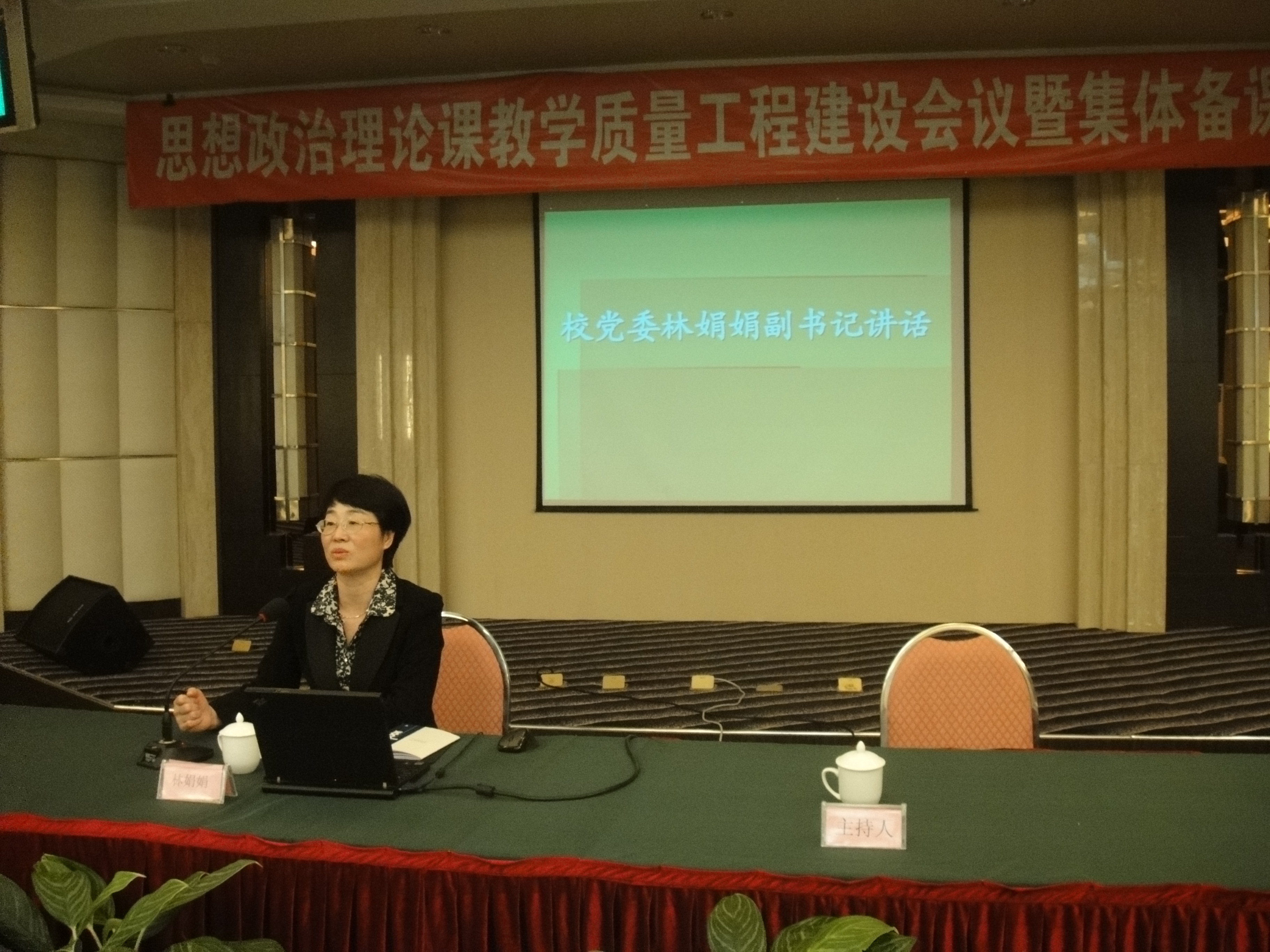 校党委副书记林娟娟作重要讲话。林书记强调:人才培养是学校的根本任务,教学是一个主渠道,是学校的中心工作。思政课是人才培养人才的重要途径,2009年思政部独立设置后,教学改革、课程建设都取得了成效,也存在着一些问题。下一阶段思政课教学的工作要点是:认真贯彻国家中长期教育发展纲要,结合学校十二五规划精神,将提升教学质量作为核心任务来抓。思政课要注重与学生的心灵交流,树立教书育人一盘棋的理念,做到课内教学与课外育人、校内教育和校外教育相结合,引导学生打开眼界,使学生成为社会发展需要的人才。