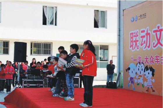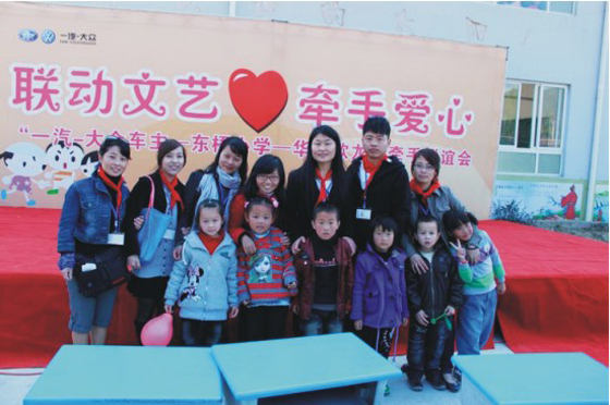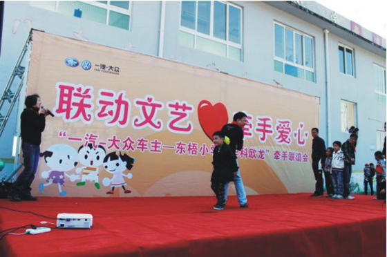 东梧小学为我们的这次爱心活动准备了丰富多彩的节目,同时我们和萤火虫义工团的工作人员进行的手语表演、兔子舞、影集展示将整场活动带向了高潮,特别是影集展示较为集中的展现了我们历次志愿活动,这在一定程度上传播了我们的志愿者精神。整个活动最后在大众公司举行的赠书仪式中落下帷幕。而我们不得不带着依依不舍的心情离开东梧小学,踏上归途。