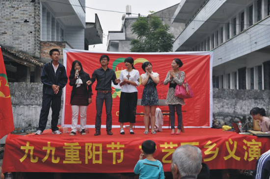 10月16日,秋高气爽,丹桂飘香,永嘉大若岩镇中心敬老院里热闹非凡。在重阳节来临之际,思政部公民教育宣讲团联合温州萤火虫义工团一行40名志愿者经过两个小时的车程来到了大若岩镇中心敬老院,向老人们送去了节日的亲切问候。近50位老人享受了一顿丰盛的大餐后,还欣赏了公民教育宣讲团和温州萤火虫义工团精心准备的精彩演出,饱了口福又饱了眼福。