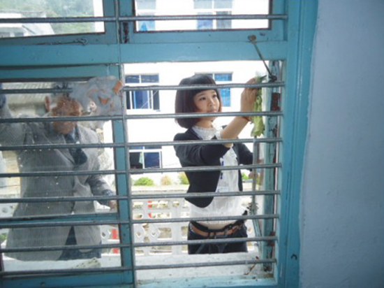 图1:志愿者帮助擦洗玻璃——人美心更美
