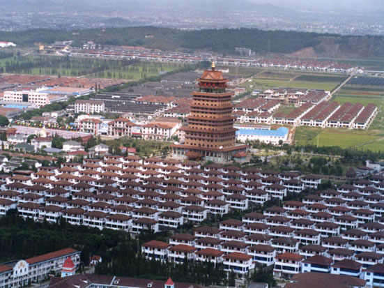 农业是民生之本,也是华西村建设社会主义新农村的重要依托。7月2日下午一到华西村,我们就率先参观了北华西高科技农业示范园区。真是百闻不如一见,里面的南瓜小至不到2两,大到重逾二三百斤,其它瓜果苗木应有尽有,既高产又好看,令人目不暇接。可以预见,高科技、集约化必然是中国农业未来发展的方向。众所周知,自从农村实行家庭联产承包责任制之后,条块分割、小农分散、集约化、商品化和市场化程度不高等制约因素成为中国农村二次创业与腾飞的瓶颈。华西村在秉承以前的村级集中体制的基础之上,将分散居住的农民集中到城镇居住,腾出成片的土地,引进现代高科技,以工补农,农业与观光并举,开辟了农业规模化、集约化和产业化经营的新模式。这使得农村发展滞后的面貌得以焕然一新,为新时期“三农”难题的破题,为实现农民奔小康的理想,提供了一个成功的范例。