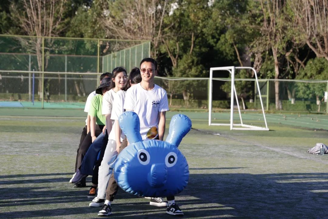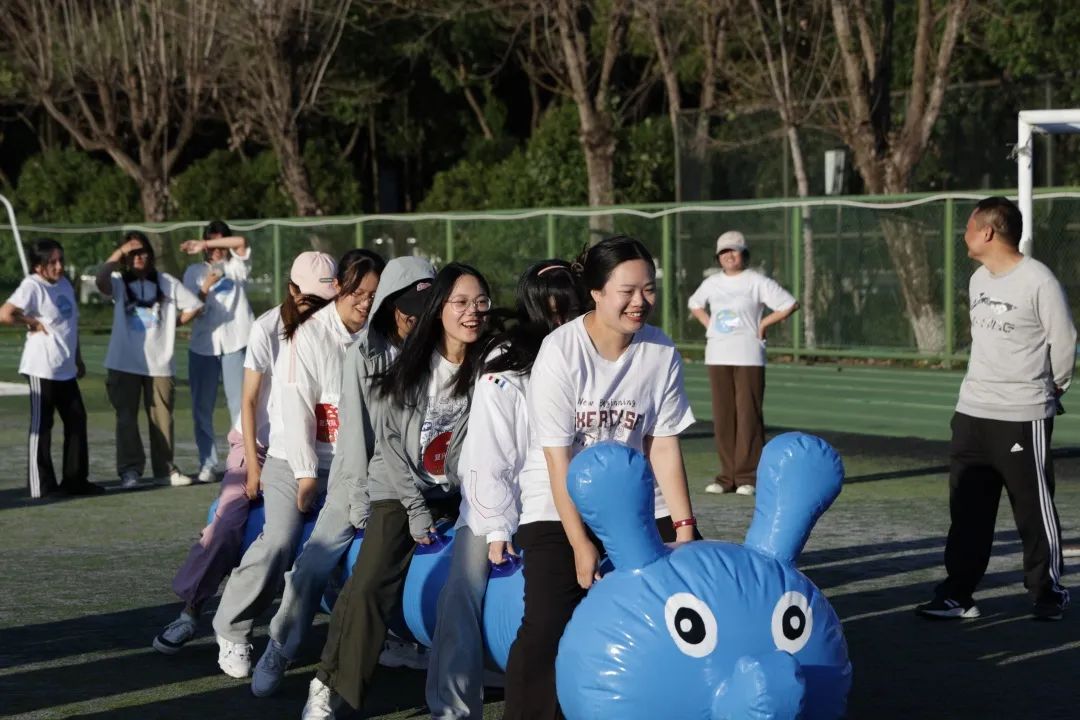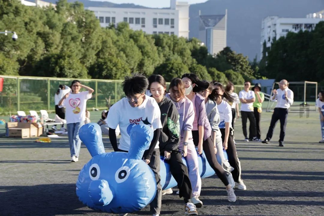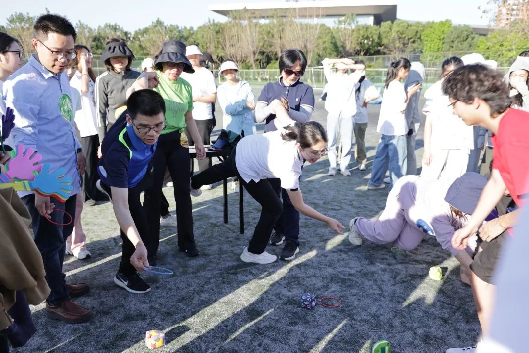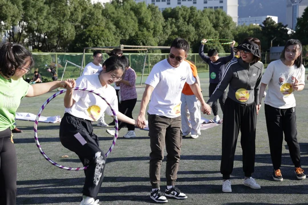 比赛在同学们的加油呐喊声中拉开帷幕。比赛共有筷子夹乒乓球+PC管运球+穿越呼啦圈、不倒森林、趣味毛毛虫、定向打卡四项。各项活动在同学们的组织下有序开展。比赛的氛围也在老师们与同学们的积极讨论,合作配合中持续升温,球与球,手拉手地传递也让老师和同学愈发默契,秋日暖阳映照下,每个人的脸上都洋溢着团结一致奔赴胜利的喜悦。
