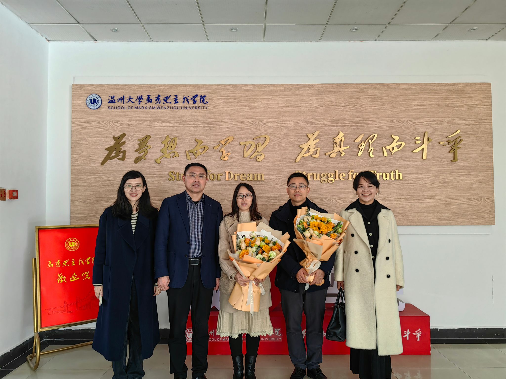 在龙年春节即将来临之际,市社科联为了加强社科人才联络、汇聚研究力量、助力强城行动,特地组织了迎新春走基层活动。2024年2月5日下午,市社科联主席潘晓勇、副主席叶雪影、副秘书长黄希丹等一行专门来到yl6809永利,一并走访慰问了yl6809永利副院长孙邦金教授和人文学院副院长陈源源教授,给他们送上了鲜花和新春的祝福。