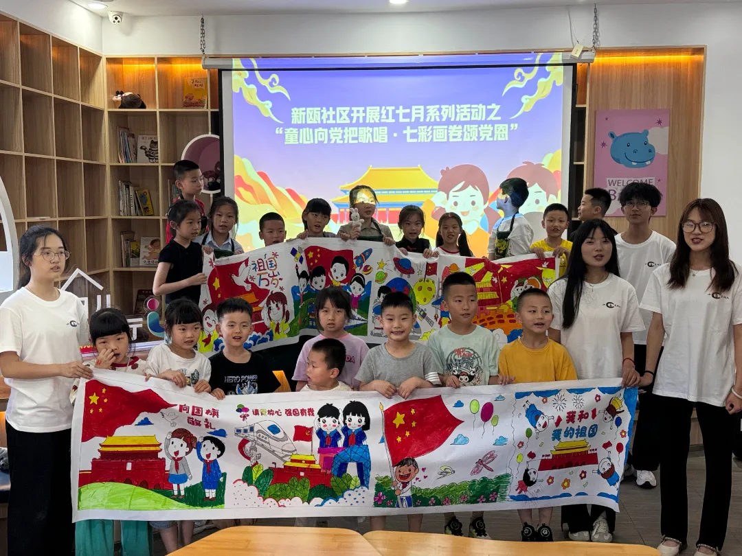 在建党103周年之际,新瓯社区新时代文明实践站开展“春泥计划·缤纷夏日”之“童心向党把歌唱,七彩画卷颂党恩”主题活动。