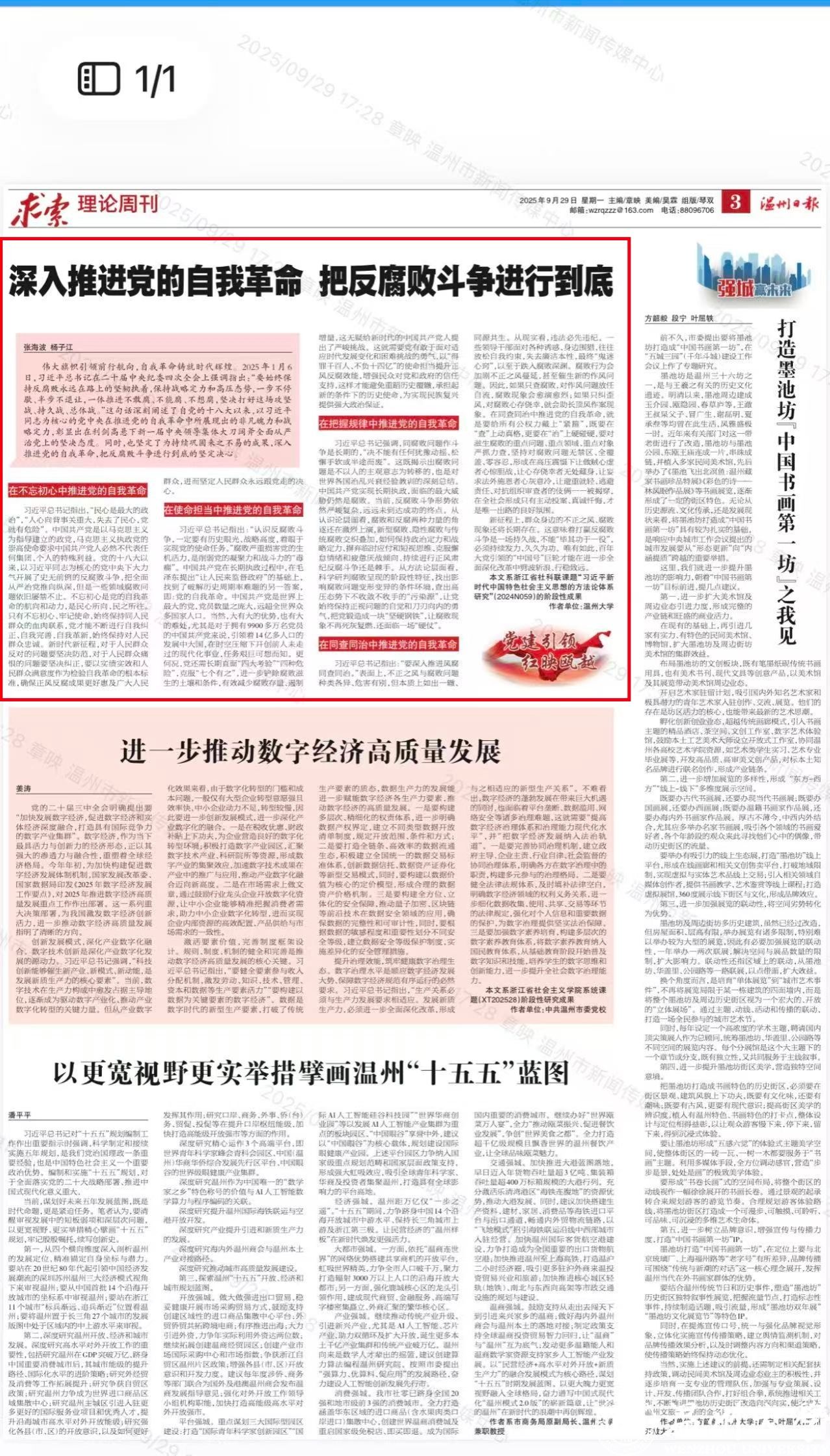 温州日报:深入推进党的自我革命 把反腐败斗争进行到底