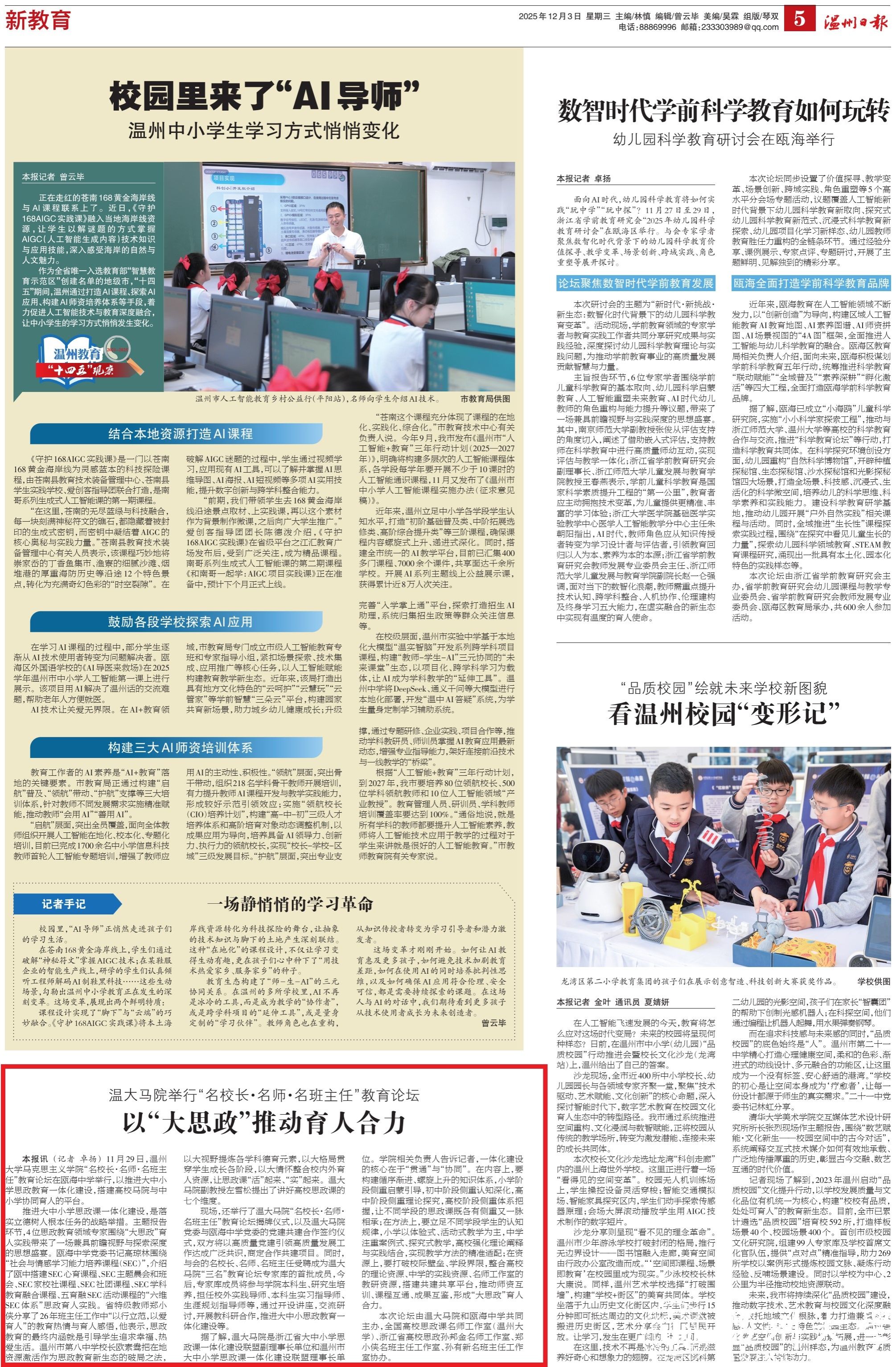 温州日报:温大马院举行“名校长·名师·名班主任”教育论坛 以“大思政”推动育人合力