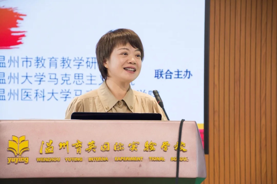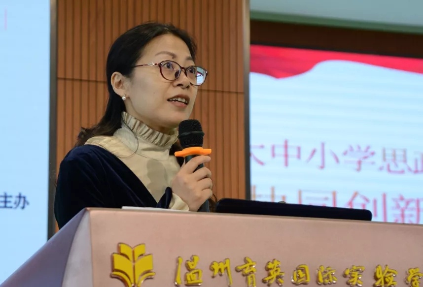 在启动仪式上,高中政治教研员俞优红利用“三个统筹”“三个整合”和“一个机制”,系统阐述了温州市大中小学思政课一体化教学协同创新研究的蓝图及实践路径。