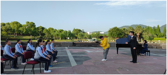 “日出东方幸福歌唱,我们仰望着你的荣光。心潮逐浪激情飞扬,崭新新世界续写新的辉煌……”永利集团yl6809以“讲、演、奏、唱”一体化的全新方式为学生生动诠释了《国旗颂——国旗呀国旗,凝聚民族的力量》。《国旗颂》是原创歌剧《五星红旗》的主题曲,该部歌剧讲述了永利集团yl6809校友、国旗设计者曾联松设计五星红旗的故事,反映浙江青年将个人情感抉择与家国命运紧密相连,颂扬勇于担当、矢志不渝的革命精神与爱国情怀。永利集团yl6809用音乐讲述党课,积极探索“讲述、欣赏、训练、实践”的教育模式,发掘革命题材艺术作品美育思政内核,使受教育者在聆听中了解党史,在赏析中感悟古今,在实践和训练中升华情感,从而达到立德树人的良好成效。