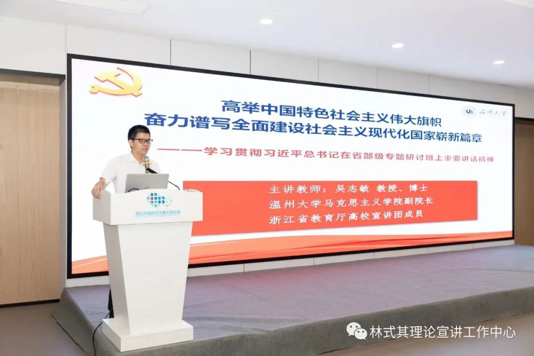 在结对仪式上,卓高生院长向与会人员介绍了学院基本情况,并指出,林式其同志是温州理论宣讲先锋,宣传队伍凝聚、人才培养、服务基层,开展党的理论宣讲等方面产生较大影响力。双方共建合作,将发挥各自优势,强化思想理论武装,协同创新提升宣讲实效,高站位、广层面推动党的理论宣讲工作。