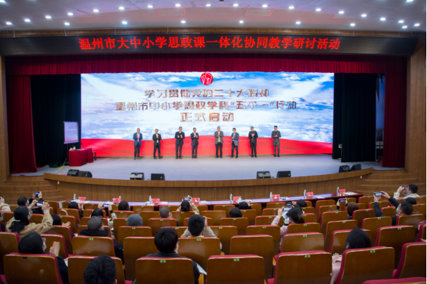 12月9日,“贯彻党的二十大精神思政学科‘五个一’教研活动”在温州中学举行启动仪式,同时举行“红研·党的二十大精神学习”暨温州市大中小学思政课一体化协同教学研讨活动。本次活动由温州市教育局主办,温州市教育教学研究院和yl6809永利承办,温州中学协办。温州市委教育工委专职副书记、市教育局党委副书记王剑波出席会议并发表讲话。温州市教育教学研究院书记、院长徐海龙主持。